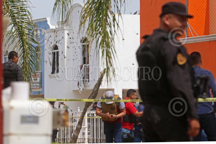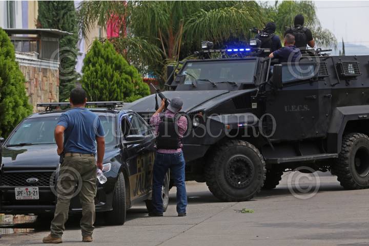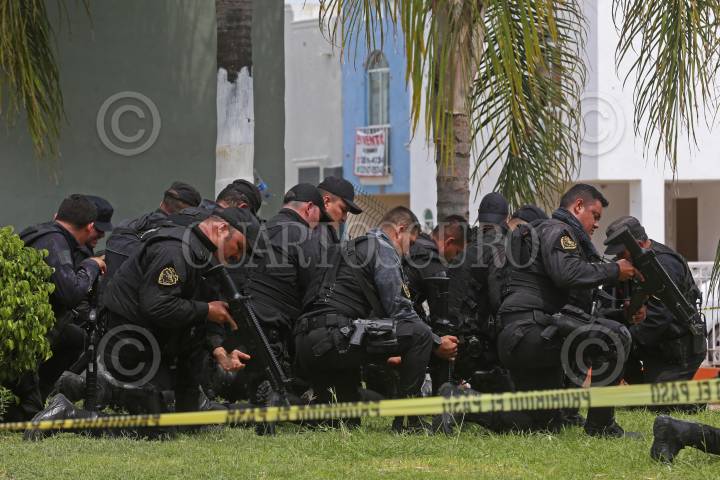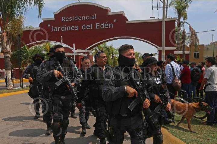 TLAJOMULCO DE ZUÑIGA, JALISCO, 21JUNIO2019.- Esta mañana en el fraccionamiento Jardines del Edén se enfrentaron a balazos civiles armados y autoridades de seguridad de diversas corporaciones en donde hasta el momento ahí cuatro personas fallecidas, dos personas heridas y ocho detenidos. FOTO: FERNANDO CARRANZA GARCIA / CUARTOSCURO.COM