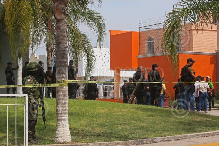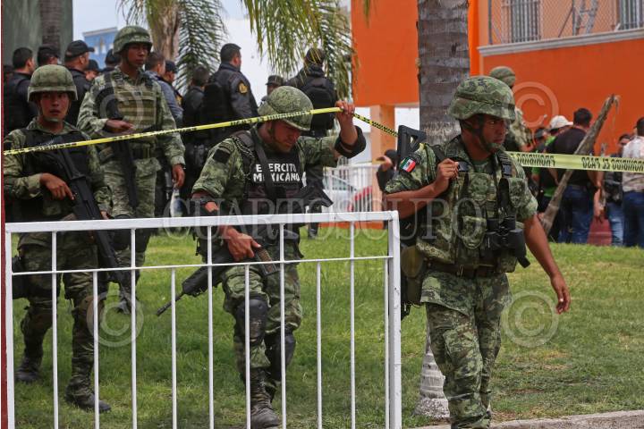 Personal de la Guardia Nacional resguardan la zona donde se registro un enfrentamiento entre policías municipales y civiles armados en la colonia Chapalita.