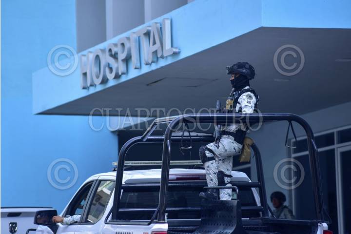 ACAPULCO, GUERRERO, 25ABRIL2025.- Esta tarde fue a dado a conocer el fallecimiento de Marco Antonio Suastegui Muñoz, luchador social, lider del Consejo de Ejidos y Comunidades Opositoras a la Presa La Parota (CECOP) y líder de la asociación de Turisteros Unidos en Defensa de Playa Icacos (Tuderpi) , en el hospital Aqua de Acapulco. Suastegui sufrió un atentado armado hace 8 días en uno de los accesos a la playa Icacos, donde resultó gravemente herido, Suastegui se debatió entre la vida y la muerte hasta que hoy fue dado a conocer su fallecimiento, en el hospital una camioneta del servicio médico trasladó sus restos, mientras el lugar fue resguardado por policías y ka Guardia Nacional. FOTO: CARLOS ALBERTO CARBAJAL/CUARTOSCURO.COM