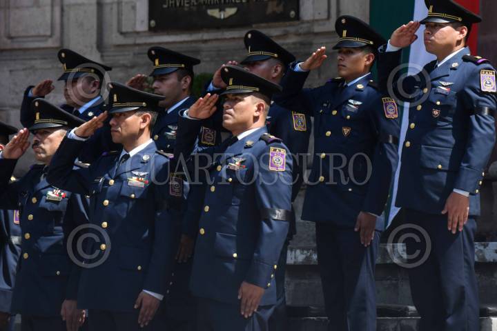 CIUDAD DE MÉXICO, 08MAYO2025.- Ricardo Trevilla, secretario de la Defensa Nacional y Óscar René Rubio, comandante de la Fuerza Aérea Mexicana, encabezaron la ceremonia póstuma en Honor al Sargento 1/o. de Transmisiones Retirado César Maximiliano Gutiérrez Marín, último integrante del "Escuadrón 201" unidad aérea mexicana que participó en la segunda guerra mundial. La ceremonia fue realizada en el monumento a la Fuerza Aérea Expedicionaria Mexicana ubicado en el Bosque de Chapultepec. FOTO: MARIO JASSO/CUARTOSCURO.COM