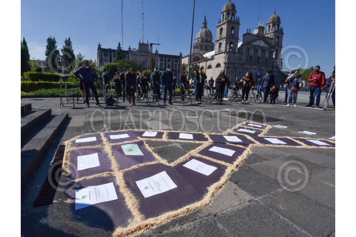 Rinden homenaje a las personas fallecidas por COVID-19 frente a la Cámara de Diputados del Estado de México.