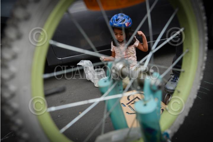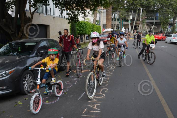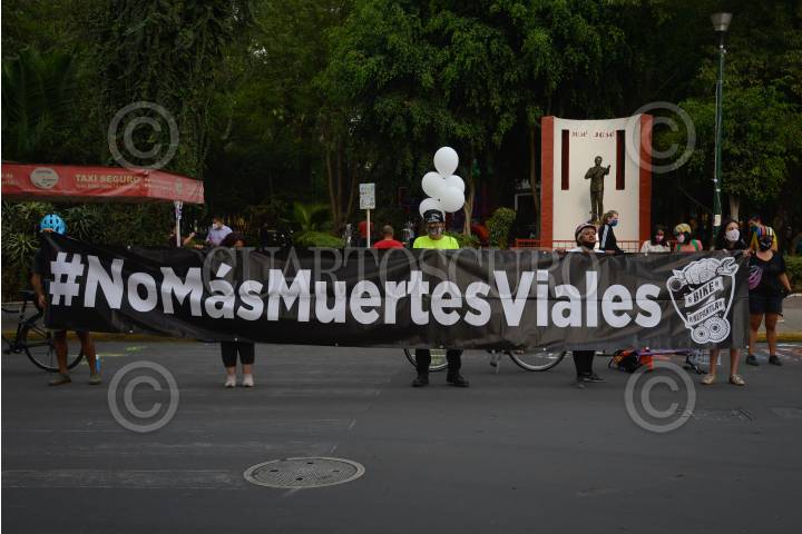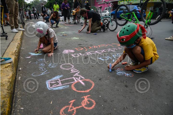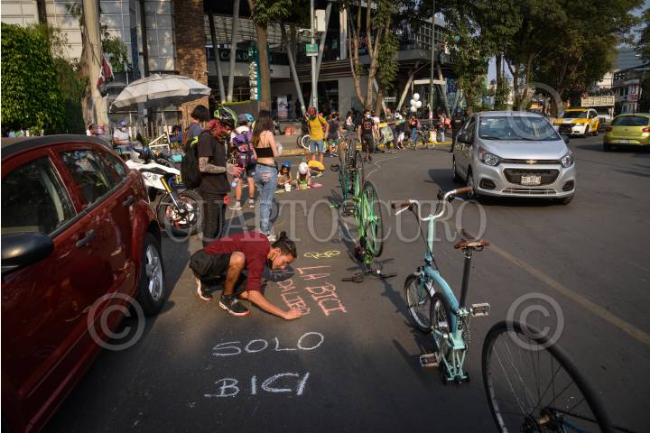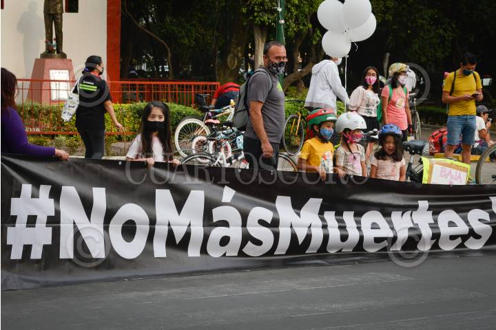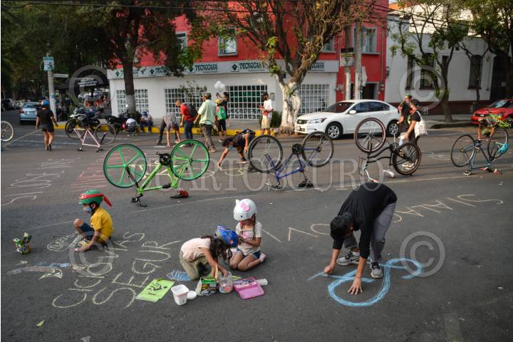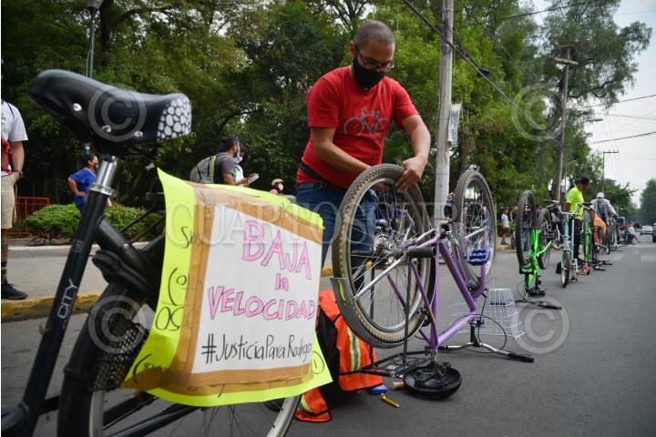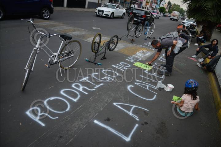 Integrantes de colectivos contra la violencia vial se reunieron en el Parque de la China para realizar una pinta simbólica de ciclovía, en contra de la violencia vial, y en memoria de Rodrigo quien murió a causa de un accidente vial en la colonia Clavería.