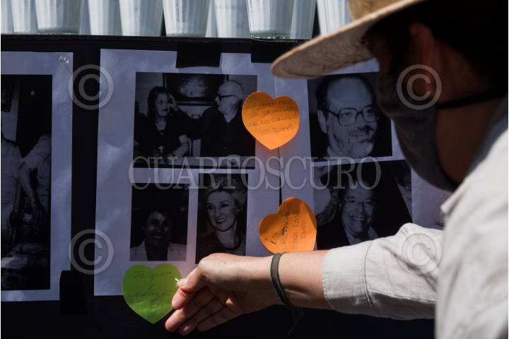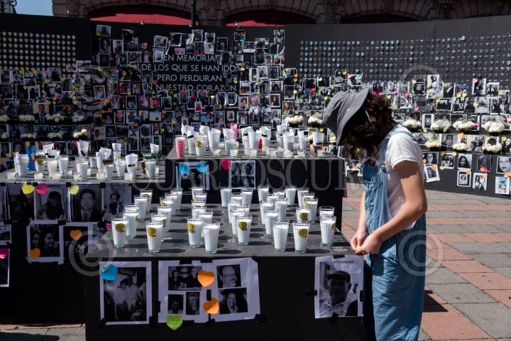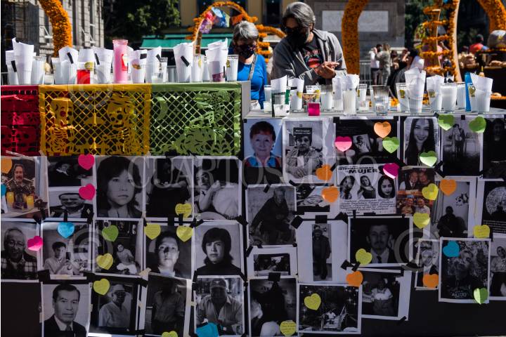Aspectos del altar a víctimas de Covid-19 colocado en la plaza Tolsa en el Centro Histórico.