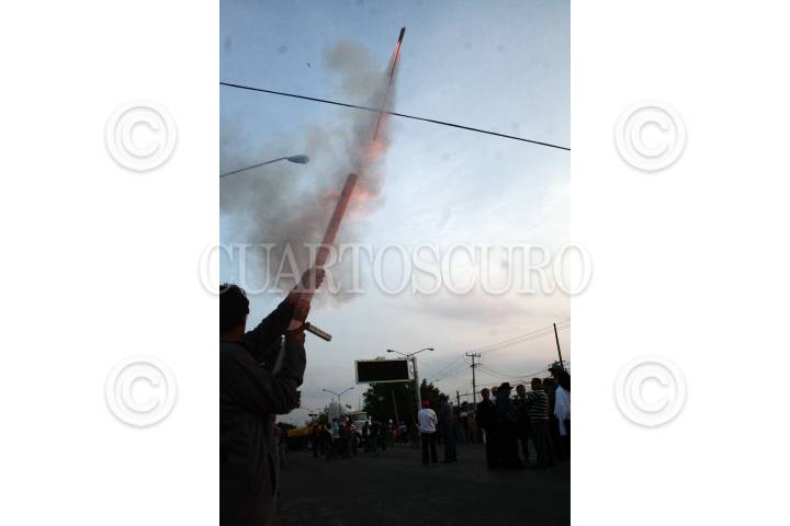 OAXACA, OAXACA 14JUNIO2009.-Esta madrugada diversos cruceros y calles de la ciudad de Oaxaca amanecieron en poder de integrantes de la Asamblea Popular de los Pueblos de Oaxaca y maestros de la sección 22 del Sindicato Nacional de Trabajadores de la Educación (SNTE) quienes de esta manera recuerdan y protestan por el fallido desalojo policial realizado por el Gobierno del Estado en el centro histórico en contra del movimiento magisterial ocurrido hace tres años. FOTO: MAX NÚÑEZ/CUARTOSCURO.COM
