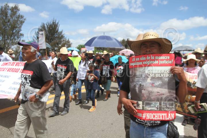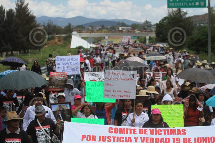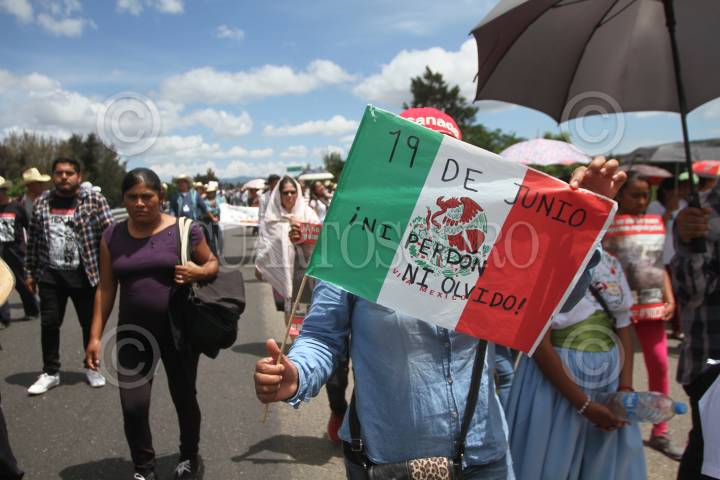 ASUNCIÓN NOCHIXTLÁN , OAXACA, 19JUNIO2017.- Miles de personas, entre profesores de la sección 22 de la Coordinadora Nacional de los Trabajadores de la Educación (CNTE), pobladores de Asunción Nochixtlán e integrantes de diversas organizaciones sociales marcharon este lunes en Nochixtlán al cumplirse un año del desalojo fallido realizado el 19 de junio del 2016 durante el gobierno de Gabino Cué, en el que fallecieron 8 personas. FOTO: ARTURO PÉREZ ALFONSO/ CUARTOSCURO.COM