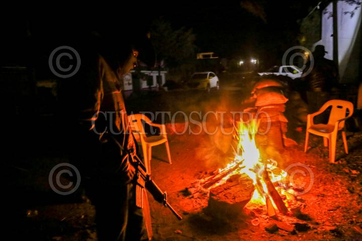 SAN JUAN NUEVO, MICHOACÁN, 17ENERO2018.- El pasado 5 de enero fue asesinado un joven de la comunidad, este crimen desato el enojo de los comuneros quienes comenzaron a buscar las casas de seguridad y que al menos 5 de ellas fueron quemadas así como varios vehículos y la detención de 13 personas, familiares del jefe de plaza “El Gastón” de nombre Roberto García Mendoza quien es acusado por la comunidad de cobro de cuotas, levantones y secuestros a causa del Cartel La Nueva Familia, motivo por el cual la comunidad se organizó y reaparecieron las guardias comunitarias para realizar tareas de vigilancias en las tres entradas de la comunidad, así como patrullajes al interior de la comunidad. De acuerdo con los comuneros el movimiento de vigilancia local es un grupo de hombres que comparten el mismo objetivo, salvaguardar la integridad de la comunidad, se mantiene de las contribuciones que la población realiza, no están afiliados a ninguna secta, partido político, región o institución alguna, mucho menos al crimen organizado. FOTO: JUAN JOSÉ ESTRADA SERAFÍN /CUARTOSCURO.COM