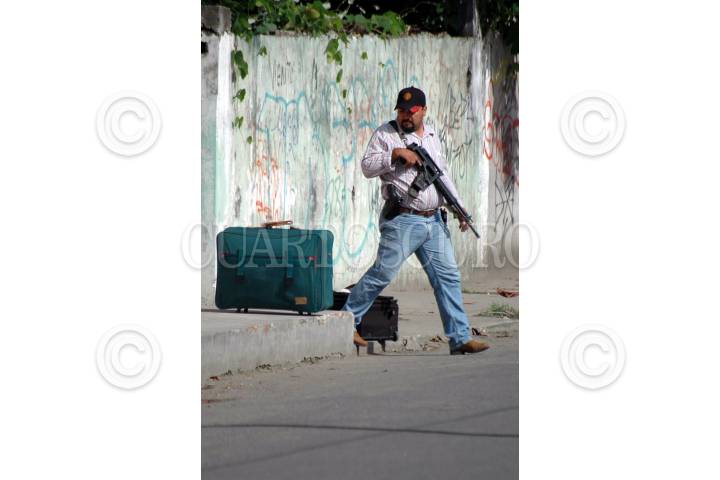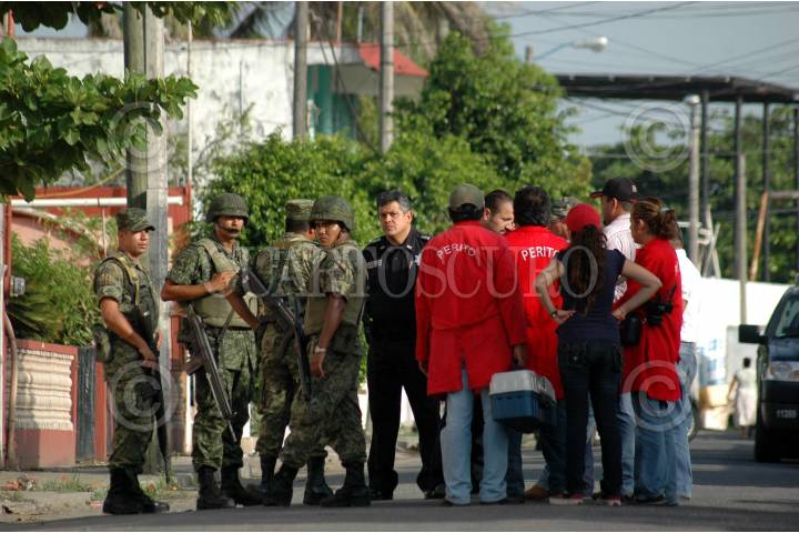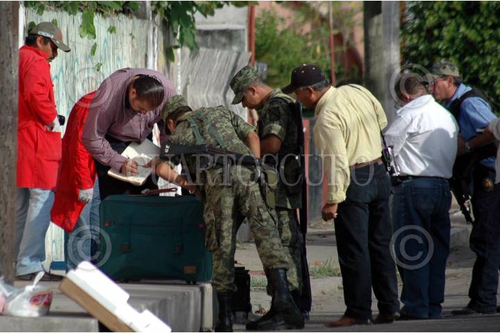 BOCA DEL RÍO, VERACRUZ, 20JULIO2009.- Luego de una llamada a la central de emergencias de gobierno del estado realizada por vecinos reportando la presencia de tres maletas de viaje depositadas sobre la acera de la calle de El Universal, entre Ovaciones y Dictamen, de la colonia Carranza, al sur de la zona conurbada Veracruz-Boca del Río, se monto un operativo entre el ejército, policía intermunicipal y federal. Una primera versión indicaba que se trataba de al menos dos cuerpos mutilados o hasta de armamento de alto poder, pero luego de hora y media se procedió a la apertura de las mismas donde solo se encontró ropa tanto de mujer como de varón. FOTO: JOSÉ CANDELARIO/CUARTOSCURO.COM