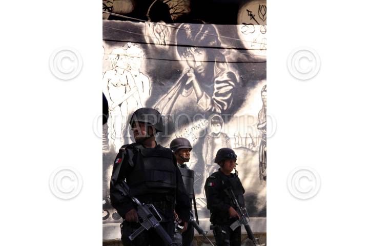 OAXACA, OAXACA 07 DE DICIEMBRE 2006.- Policias estatales acuden ante una alarma de bomba que resulto falsa en las instalaciones del INEGI, ubicada en la Colonia Reforma. FOTO: MAX NUÑEZ/CUARTOSCURO.COM