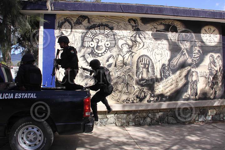 OAXACA, OAXACA 27NOVIEMBRE2009.- Después de un gran operativo en las tres Escuelas Normales ubicadas en la capital del estado, por supuesta amenaza de bomba, cuerpos de seguridad llegaron al lugar, reportan que no se encontró artefacto alguno, por lo que el llamado resultó ser uno de las muchas bromas que se atienden en el número de emergencias 066. FOTO: MAX NÚÑEZ/CUARTOSCURO.COM