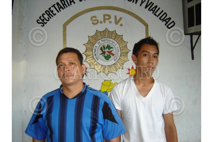 ACAPULCO, GUERRERO, 30AGOSTO2008.- Silvestre Radilla Astudillo y su hijo Pablo José Radilla Pino, de 40 y 20 años de edad, fueron detenidos ayer como probables responsables de violación a la ley de propiedad industrial cometida en agravio de la empresa purificadora de agua Marketing y Agua Diana, informó el comandante operativo de la Policía Preventiva, Gerardo Saldaña Vela. FOTO: MARINO D. VALDEZ/CUARTOSCURO.COM