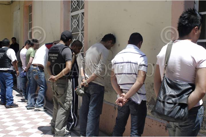 MÉXICO, D.F., 26MARZO2009.- Mas de 10 sujetos fueron detenidos por elementos del Grupo SERPICO de la Secretaria de Seguridad Publica por el delito de falsificación de documentos oficiales los cuales eran investigados desde hace 3 meses, mismos que fueron puestos a disposición de la 50 Agencia del Ministerio Publico. FOTO: LUIS CARBAYO/CUARTOSCURO.COM