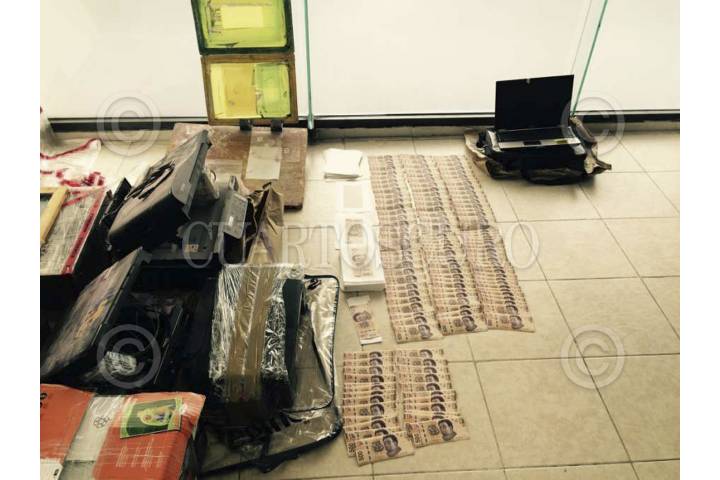 MÉXICO, D.F., 25NOVIEMBRE2014.- Tres personas fueron detenidas por presuntamente fabricar poco más de 17 mil billetes falsos de 500 pesos, informó este martes la Procuraduría General de la República (PGR) y el Banco de México (Banxico). Las tres personas detenidas en Guanajuato el 18 de noviembre, de nombre Marco Antonio Palacios, Issac Zárate y Jaime Flores, presuntamente forman parte de una banda dedicada a la falsificación de billetes principalmente de 500 pesos, cuya primera pieza se detectó en abril de 2012 en instituciones de crédito. FOTO: PGR /CUARTOSCURO.COM