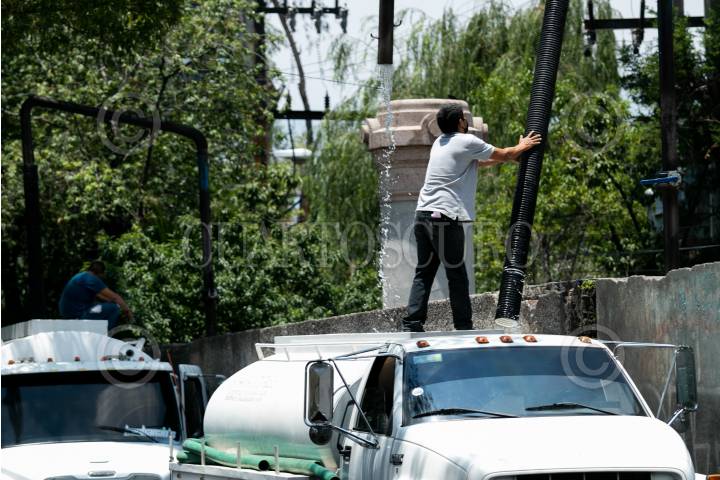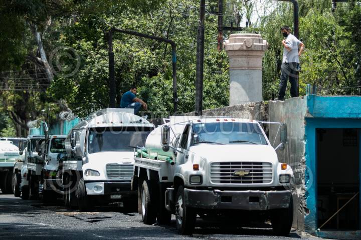 Conductores de pipas se abastecen en uno de los pozo de la alcaldía Tlalpan