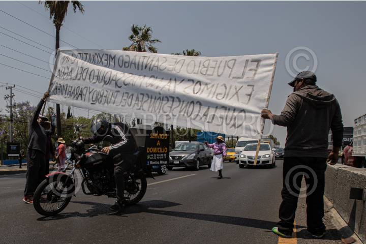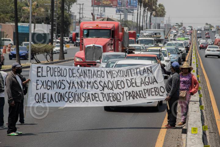 Pobladores de Santiago Mexquitlán bloquearon la carreta que conecta a San Luis Potosí-Querétaro en exigencia de un mejor servicio de abastecimiento de agua, así como que las concesiones para el uso del vital líquido sean para el pueblo.