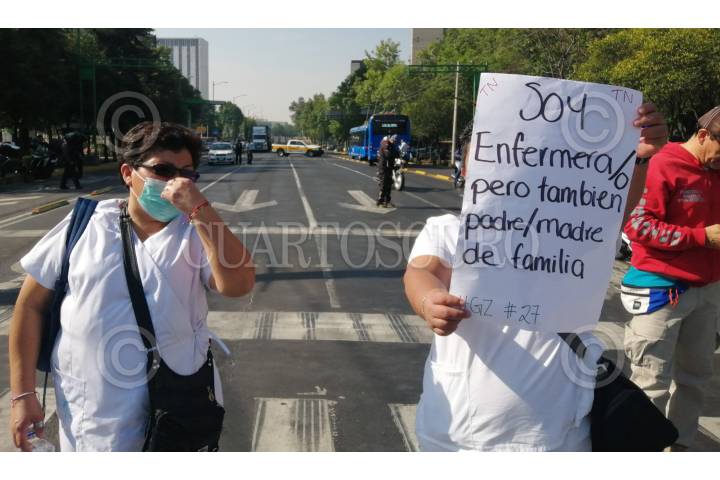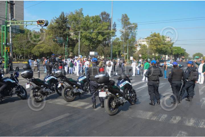 Médicos y enfermeras del Instituto Mexicano del Seguro Social (IMSS) Clínica 27, bloquearon el cruce de Eje Central y Manuel González como protesta por la falta de insumos, material quirúrgico y equipo.