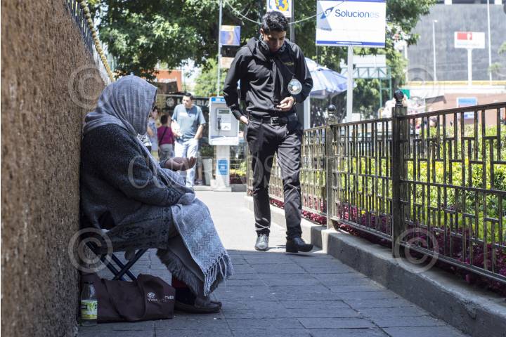 MEXICO, D.F., 15JUNIO2014.- Una mujer pide limosna a la entrada del una estación del metro en la Ciudad de México. FOTO: DAVID POLO /CUARTOSCURO.COM