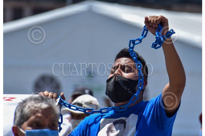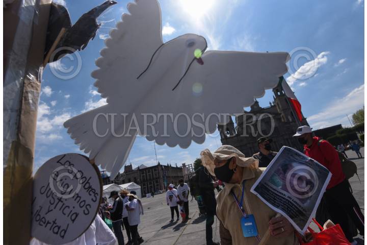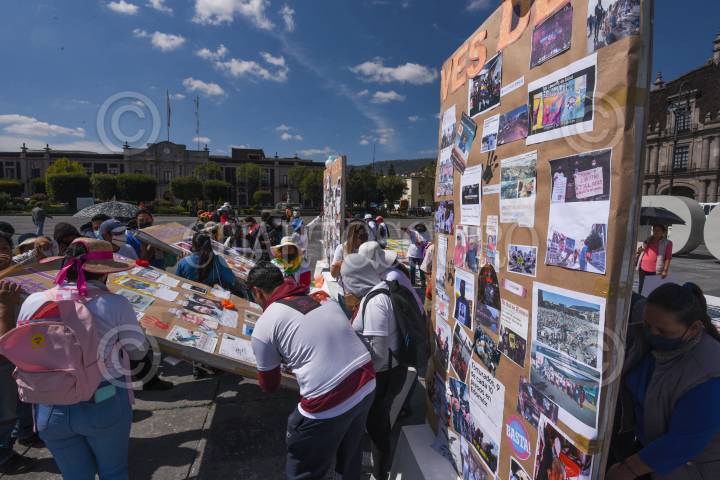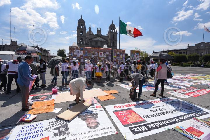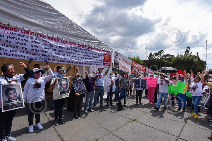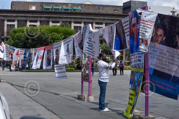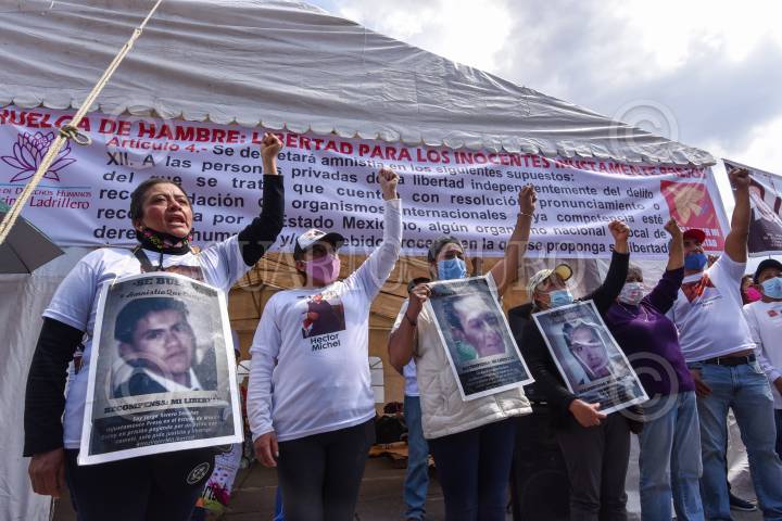 Integrantes Integrantes de #HazValerMiLibertad iniciaron una huelga de hambre en la Plaza de los Mártires, exigiendo amnistía para sus familiares presos en penales mexiquenses.