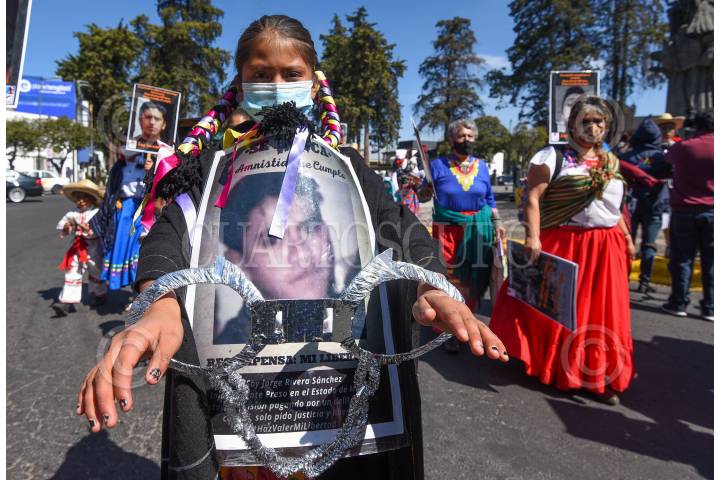 Integrantes de Haz Valer mi Libertad vestidos de revolucionarios marcharon por las calles de Toluca exigiendo que sus familiares puedan ser liberados de penales mexiquense a través de la Ley de Amnistía.