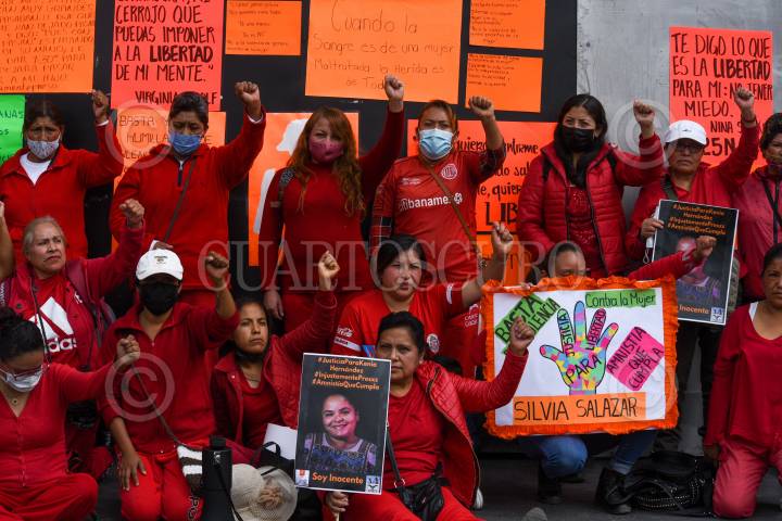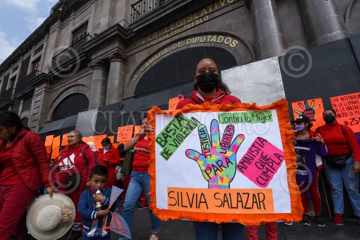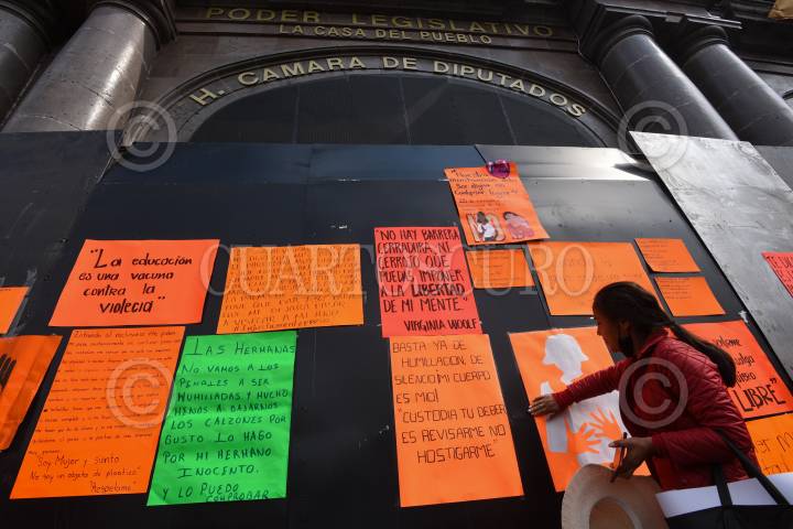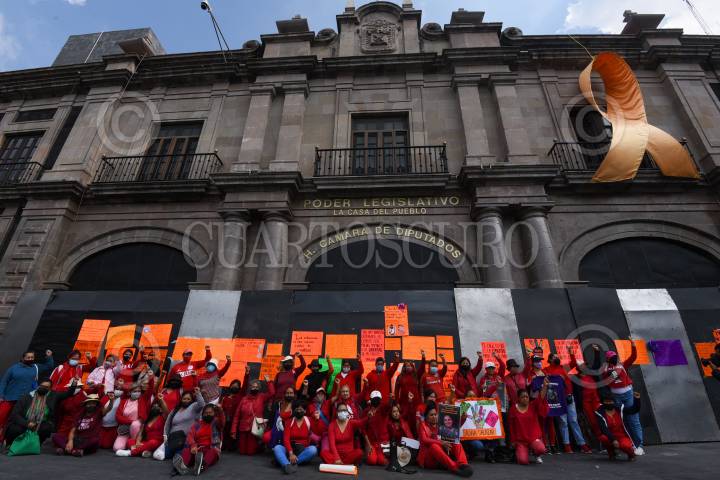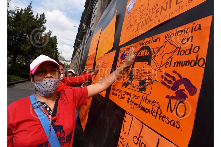 Integrantes del colectivo Haz Valer mi Libertad se manifestaron en la Cámara de Diputados exigiendo la eliminación de todo tipo de violencia en los penales del Estado de México.