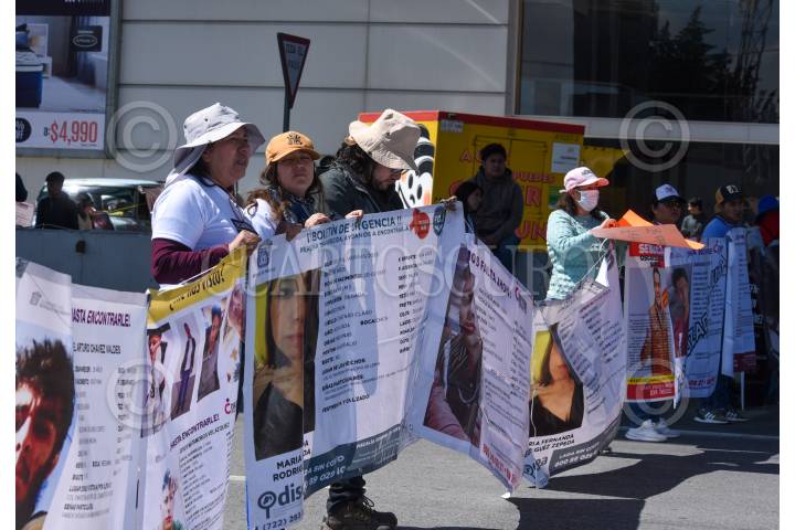 Familiares de personas desaparecidas y víctimas de feminicidios bloquearon por más de dos hora más carretera Toluca-México exigiendo la presencia de José Luis Cervantes Martínez Fiscal General de Justicia del Estado de México.