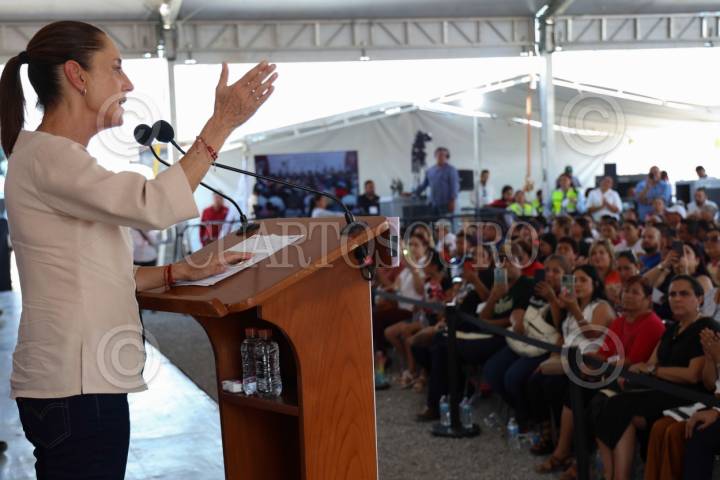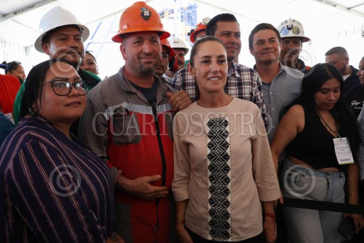 PASTA DE CONCHOS, SAN JUAN DE SABINAS, COAHUILA, 16MAYO2025.- Claudia Sheinbaum Pardo, presidenta de México, encabezó la reunión con familias de los mineros que quedaron sepultados tras el derrumbe de una mina, operada por Grupo México, en 2006. FOTO: PRESIENCIA/CUARTOSCURO.COM