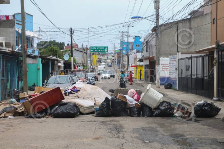 VILLAHERMOSA, TABASCO, 02JUNIO2017.- Al menos cien familias que resultaron afectadas por las intensas lluvias de ayer cerraron y bloquean las calles Niños Artilleros y Vicente Guerrero entre las colonias Tamulte de las Barrancas y Guadalupe Borja, donde formaron una columna con los muebles de sus hogares que tuvieron como perdidas por las aguas que inundaron sus casas. Las afectaciones de estos habitantes son visibles sobre las calles donde intentan recuperar lo que mas se pueda; ahí las autoridades del gobierno municipal y estatal les prometieron ayuda humanitaria pero los engañaron. FOTO: MARCO POLO GUZMÁN HERNÁNDEZ /CUARTOSCURO.COM
