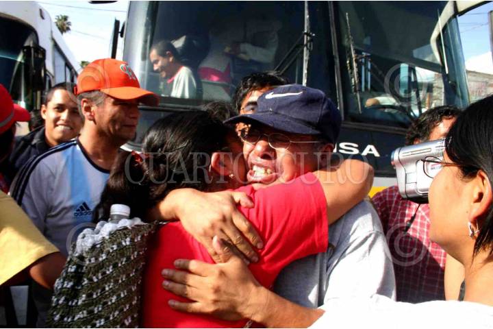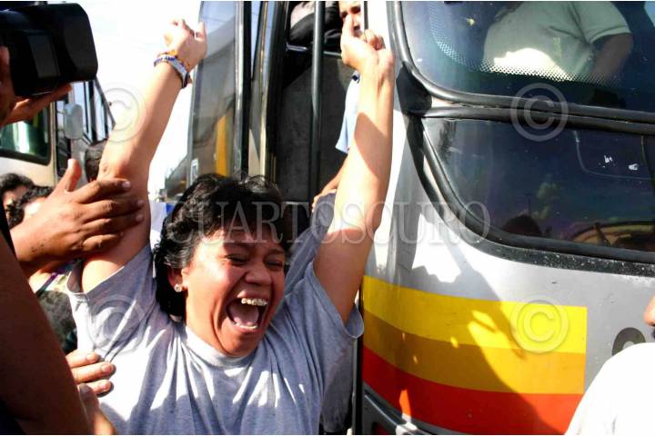 OAXACA, OAXACA 17DICIEMBRE2006.- Familiares reciben a 43 personas simpatizantes a la Asamblea Popular de los Pueblos de Oaxaca que se encontraban presas en el penal de Nayarit. FOTO: MAX NUÑEZ/CUARTOSCURO.COM