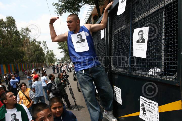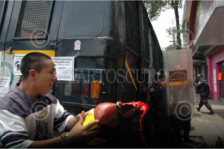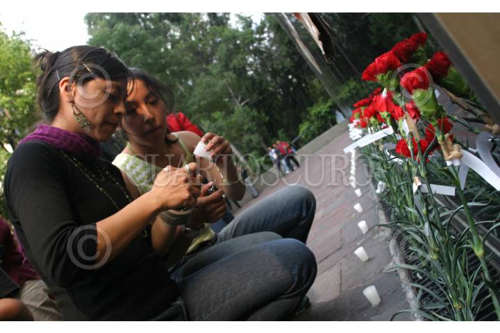 MEXICO, D.F., 24JUNIO2008.- Compañeros de los jovenes fallecidos en la discoteca New`s Divine se manifestaron a las afueras del antro, donde exigieron se esclaresca la muerte de dichas personas. FOTO:SAÚL LÓPEZ/CUARTOSCURO.COM