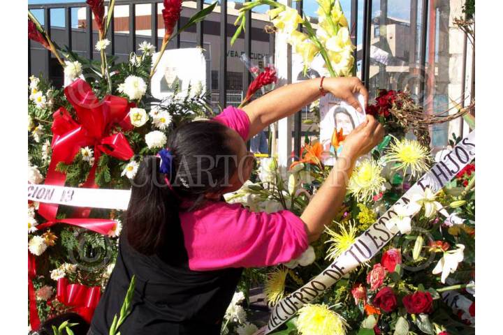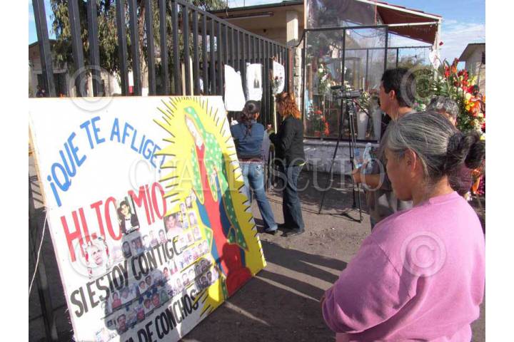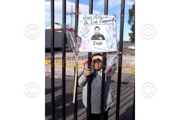 NUEVA ROSITA, COAHUILA,19FEBRERO2007.- Familiares y amigos de los 65 mineros que perecieron en el interior de la mina 8 de Pasta de Conchos asistieron a las instalaciones en donde fue instalado un altar repleto de coronas y arreglos florales en memoria de los 63 obreros que permaneces en el interior de la mina. FOTO: MANUEL RODRIGUEZ MURO/CUARTOSCURO.COM