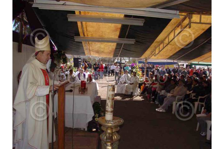 NUEVA ROSITA, COAHUILA,19FEBRERO2007.- Misa en conmemoración de los 65 mineros que perecieron hace una año en el interior de la mina 8 de Pasta de Conchos. FOTO: MANUEL RODRIGUEZ MURO/CUARTOSCURO.COM