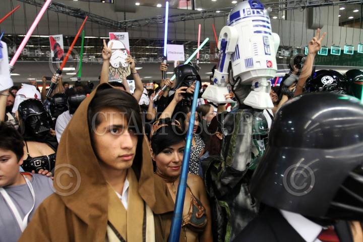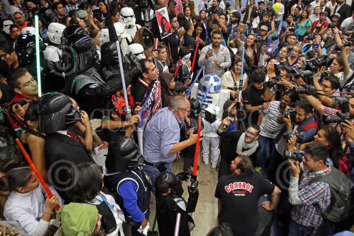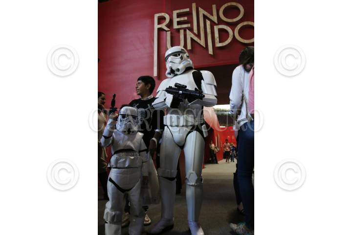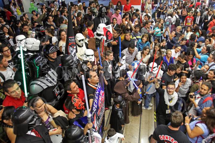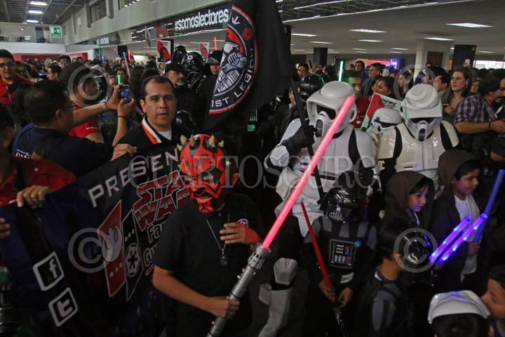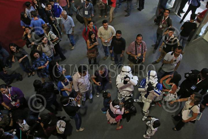 GUADALAJARA, JALISCO. 01DICIEMBRE2015.-Grupo editorial Planeta organizo el día de Star Wars una de las Sagas mas famosas de todos los tiempos a nivel mundial y en donde los fans que acudieron a la convocatoria realizada por la editorial recorrieron los pasillos de la Feria en donde interactuaban con los visitantes a la fil, esto en el marco de la edición 29 de la Feria Internacional del Libro de Guadalajara FIL, que tiene como país invitado de honor al Reino Unido. FOTO: FERNANDO CARRANZA GARCIA / CUARTOSCURO.COM