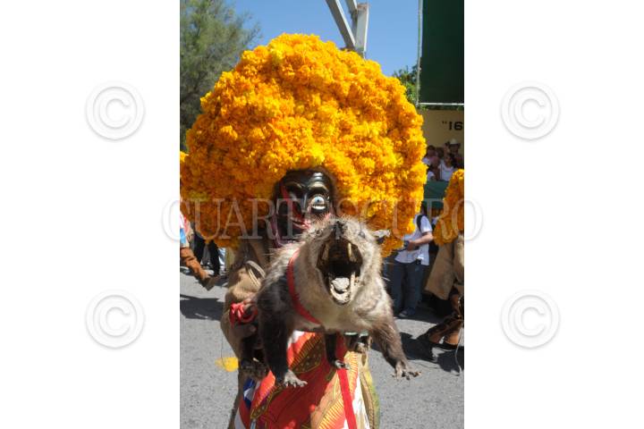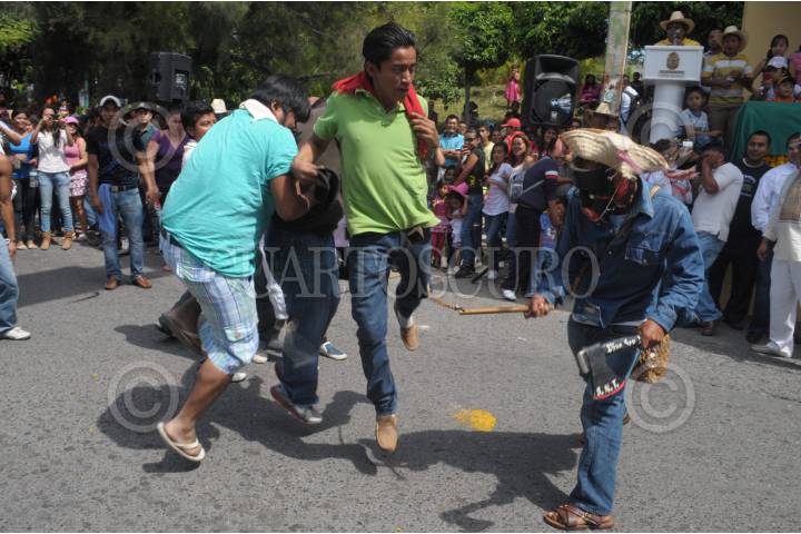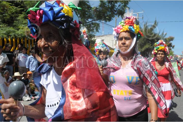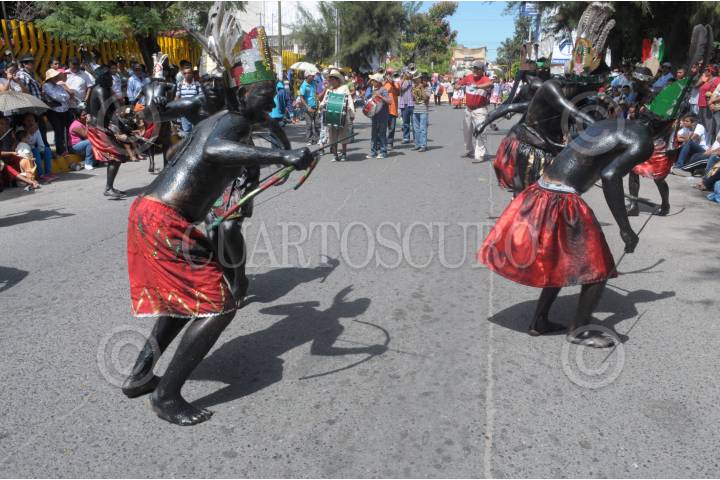 CHILPANCINGO, GUERRERO, 27OCTUBRE2012.- La conmemoración del 163 aniversario de la Erección del Estado de Guerrero se celebró este día en Chilpancingo con un fandango guerrerense, en el que desfilaron por la avenida principal diversas bandas de música y carros alegóricos que encabezaron a más de un centenar de bailes y danzas regionales de los 81 municipios, de las siete regiones. Los contingentes desfilaron de la alameda a la plaza Primer Congreso de Anáhuac de la capital del estado, la que se pintó de colores por la participación de danzas como la de Los Tlacololeros, Los Diablos, Los Moros Cabezones, Los Mudos, Los 12 Nones, Los Pescados, Los Aztecas, Los Mecos, Los Moros, Espueleros, Gachupines, Los Maizos, Los Machos, Del Torito, De Tecuani Viejo, Los Tecuanes, De Tres Potencias, De Las Mionas, De Los Diablos y de Los Diablos, de las diferentes regiones de la entidad. Desde el presídium el Secretario General de Gobierno, Humberto Salgado Gómez, en representación del gobernador Ángel Aguirre Rivero; el presidente municipal, Mario Moreno Arcos; la Secretaria de Educación en la entidad, Silvia Romero Suárez, y la directora del Instituto Guerrerense de la Cultura, Alejandra Frausto Guerrero, entre otros funcionarios, aplaudieron y disfrutaron de la participación de cada uno de los contingentes, quienes pusieron su máximo esfuerzo para demostrar a los guerrerenses y turistas nuestras tradiciones. FOTO: BERNANDINO HERNÁNDEZ /CUARTOSCURO.COM