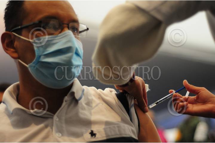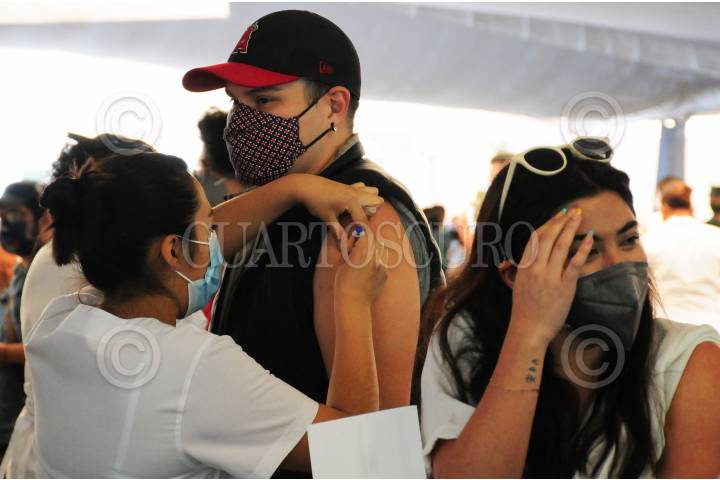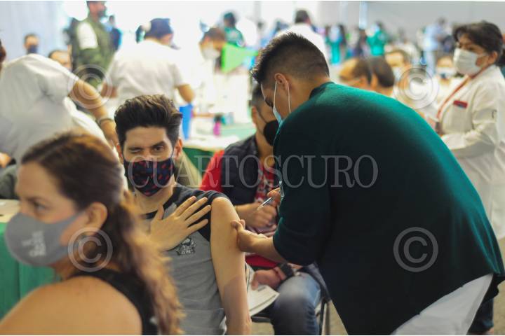 Un joven es inmunizados contra el Covid-19 en la Alcaldía Miguel Hidalgo.