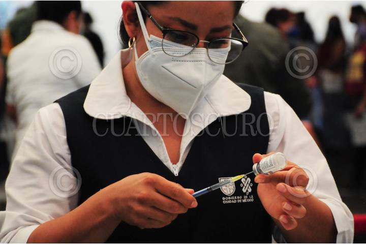 Una enfermera prepara la vacuna para inmunizar a adultos de 40 a 49 años contra el Covid-19.