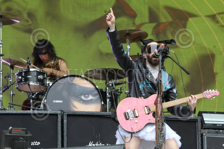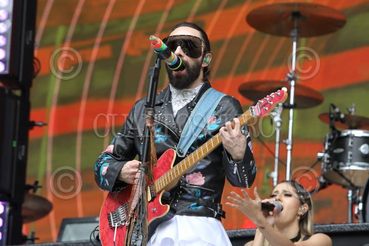 Presentación de Moderatto momentos antes de iniciar el partido de fútbol femenil amistoso, entre el Las Águilas del América vs Bayer Leverkusen que celebra los 100 años de la farmacéutica en México; realizado en la cancha del Estadio Azteca.