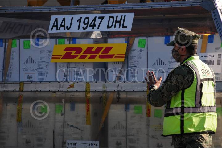 El ejército custodia la llegada de las vacunas contra el Covid-19 elaboradas por Pfizer.