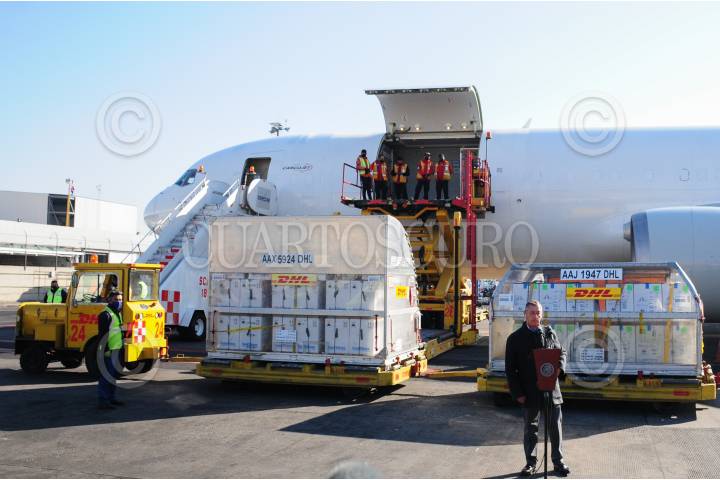 La aeronave con el cargamento de las vacunas se pfizer arribó durante la madrugada de este jueves.
