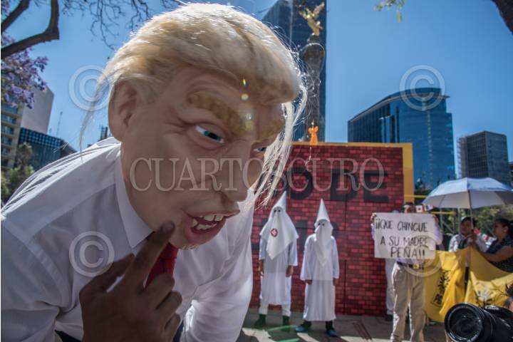 CIUDAD DE MÉXICO, 20ENERO2018.- Distintas organizaciones entre ellas la Asamblea Nacional de Articulación de los Trabajadores del Campo y la Ciudad se manifestaron frente a las instalaciones de la Embajada de Estados Unidos en reforma. El contingente manifestó su descontento contra Donald Trump y las medidas extremistas y racistas de su gobierno como la aplicación de la Alianza para la Seguridad y el Progreso de América del Norte en especifico del plan de Mérida. FOTO: ANDREA MURCIA /CUARTOSCURO.COM