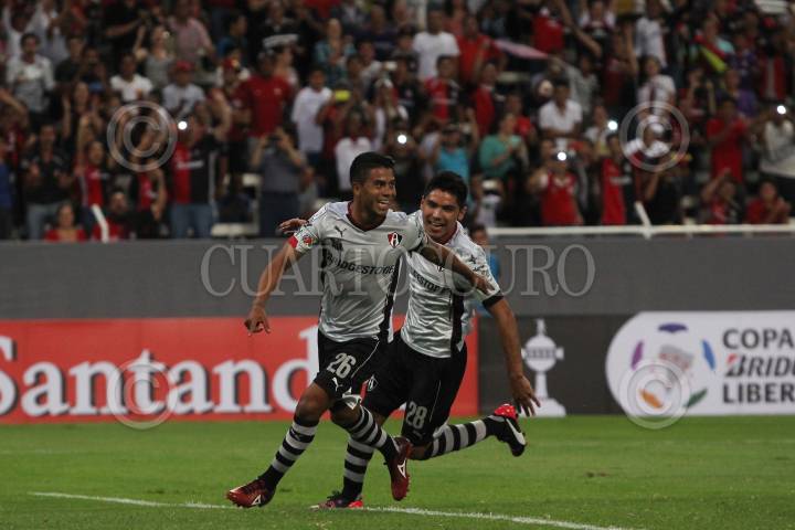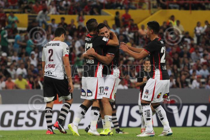 GUADALAJARA, JALISCO. 07ABRIL2015.- El jugador del Atlas de Guadalajara (México) Juan Carlos Medina celebra su anotación, esto en partido correspondiente a la Fase de grupos de la Copa Bridgestone Libertadores, en donde se enfrentan los equipos del Atlas de Guadalajara (México) frente al Colo Colo (Chile), en el Estadio Jalisco. FOTO: FERNANDO CARRANZA GARCIA / CUARTOSCURO.COM
