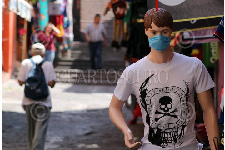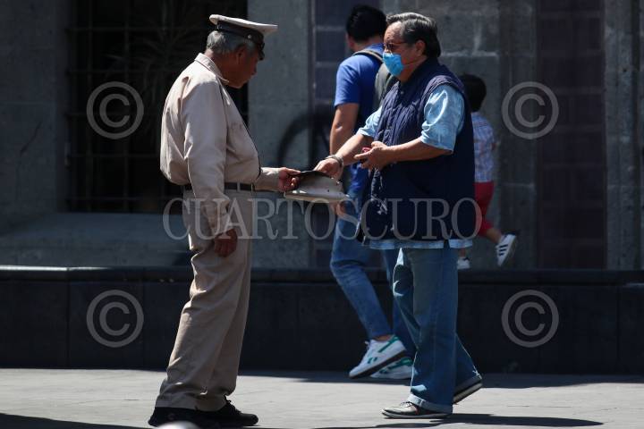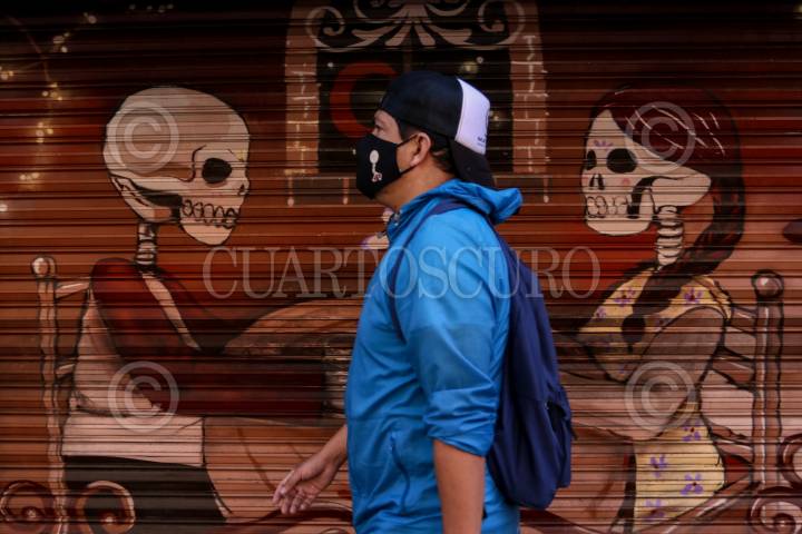 Capitalinos circulan con cubrebocas en el primer cuadro de la ciudad durante la fase dos de contagio de Covid-19.