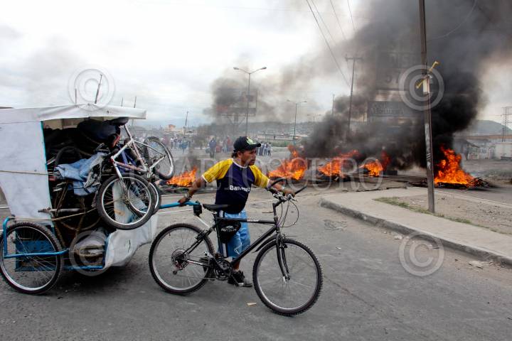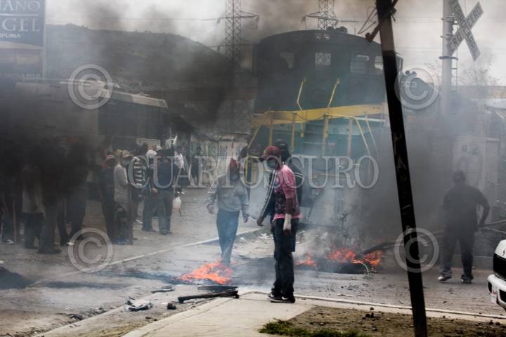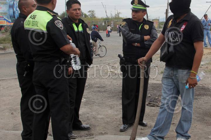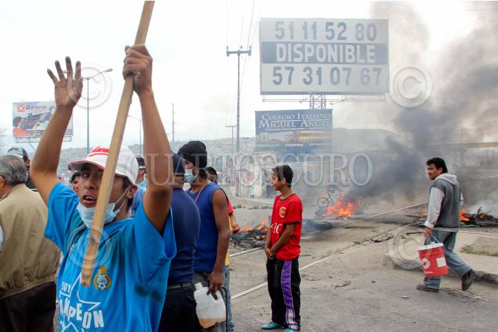 MÉXICO, D.F., 01OCTUBRE2011.- Un enfrentamiento dentro y fuera de la secundaria 678 “Juana de Asbaje y Ramírez Santillana”, ubicada en el barrio Vidrieros del municipio de Chimalhuacán, Estado de México, se registró entre padres de familia y un grupo de agresores. El saldo hasta el momento es de 20 personas lesionadas y dos vehículos incendiados, además daños en viviendas. Los inconformes bloquearon las avenidas entre los limites de Chimalhuacan y Nezahualcoyotl , así como las vías de tren que circula por el Bordo de Xochiaca. Granaderos y policías de la Agencia de Seguridad Estatal, no intervinieron para liberar la circulación. FOTO: SAÚL LÓPEZ/CUARTOSCURO.COM