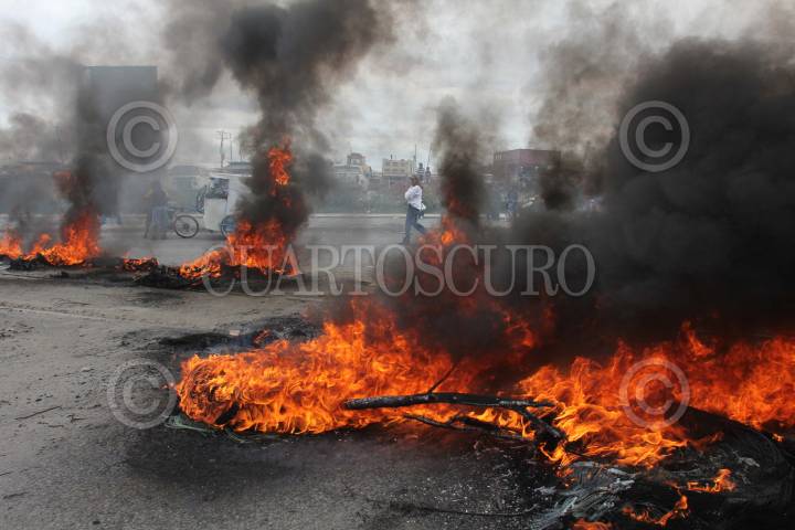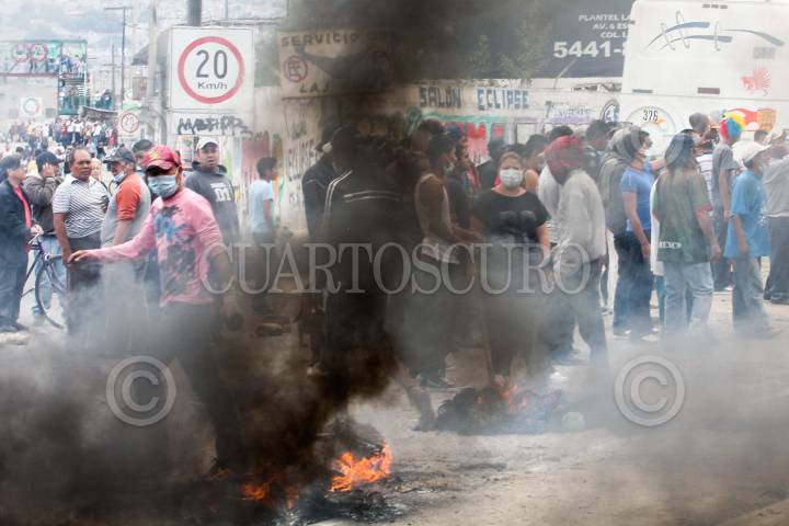 CHIMALHUACAN, ESTADO DE MÉXICO, 01OCTUBRE2011.- Un enfrentamiento dentro y fuera de la secundaria 678 “Juana de Asbaje y Ramírez Santillana”, ubicada en el barrio Vidrieros del municipio de Chimalhuacán, Estado de México, se registró entre padres de familia y un grupo de agresores. El saldo hasta el momento es de 20 personas lesionadas y dos vehículos incendiados, además daños en viviendas. Los inconformes bloquearon las avenidas entre los limites de Chimalhuacan y Nezahualcoyotl , así como las vías de tren que circula por el Bordo de Xochiaca. Granaderos y policías de la Agencia de Seguridad Estatal, no intervinieron para liberar la circulación. FOTO: SAÚL LÓPEZ/CUARTOSCURO.COM