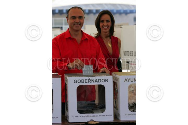 QUERETARO, QUERETARO, 05JULIO2009.-Jose Calzada Rovirosa, candidato de la coalición "Juntos para creer" emite su voto, junto a su esposa Sandra Albarrán; durante la jornada correspndiente a las elecciones locales y federales. FOTO: DEMIÁN CHÁVEZ/CUARTOSCURO.COM
