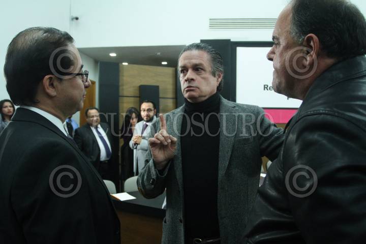 MÉXICO, D.F., 26MARZO2015.- Berlín Rodríguez, Alejandro Camacho, uno de los candidatos para una diputación federal por parte del Partido Encuentro Social y Hugo Eric Flores, presidente del partido, durante la entrega de los registros de candidatos ante el INE. FOTO: ISABEL MATEOS /CUARTOSCURO.COM