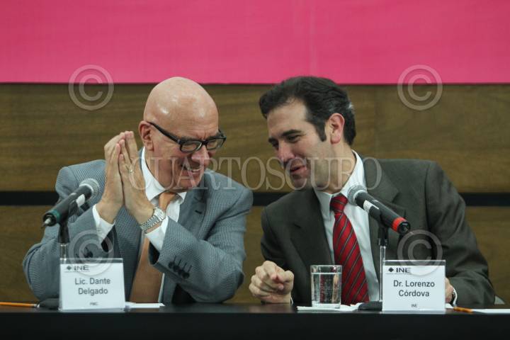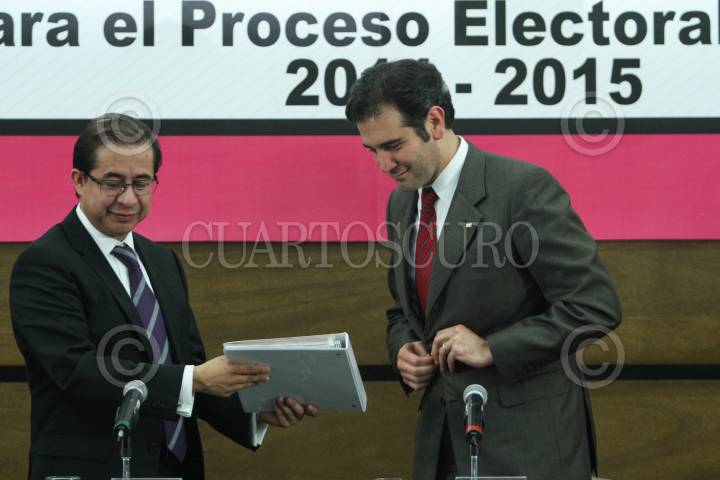 MÉXICO, D.F., 26MARZO2015.- Dante Delgado, presidente del partido Movimiento Ciudadano, entrego al presidente del INE, Lorenzo Córdova el registro de sus candidatos a diputados federales, para las elecciones del próximo 7 de junio. FOTO: ISABEL MATEOS /CUARTOSCURO.COM