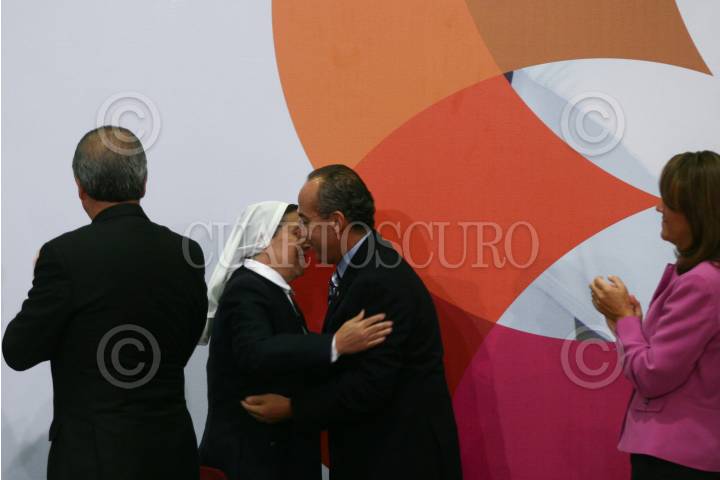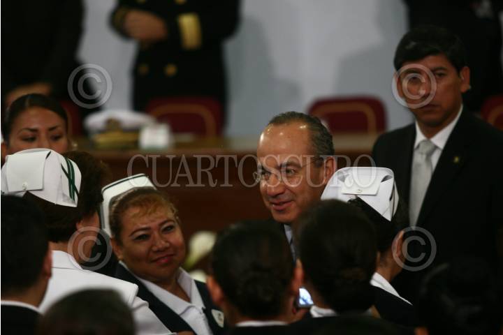 MÉXICO, D.F., 06ENERO2009.- Felipe Calderón Hinojosa Presidente de México felicita a Sor María Suárez Váquez Directora de enfermería del Instituto Nacional de Cardiologíadurante la ceremonia del día de la enfermera realizada en la residencia oficial de los Pinos. FOTO: SÁSHENKA GUTIERREZ/CUARTOSCURO.COM