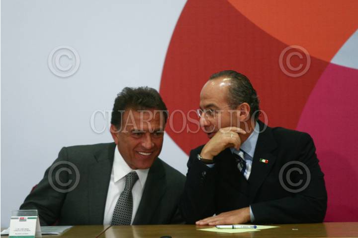 MÉXICO, D.F., 06ENERO2009.- Felipe Calderón Hinojosa Presidente de México conversa con Miguel Ángel Yunes, durante la ceremonia del día de la enfermera realizada en la residencia oficial de los Pinos. FOTO: SÁSHENKA GUTIERREZ/CUARTOSCURO.COM