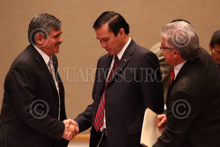 MÉXICO, D.F., 10JULIO2009.- Leonardo Valdes Zurita consejero presidente es felicitado por los demas consejeros electorales pal termino de la Sesion Extraordinaria del Consejo General del Instituto Federal Electoral FOTO:SÁSHENKA GUTIÉRREZ/CUARTOSCURO.COM