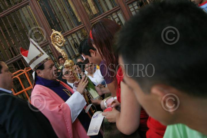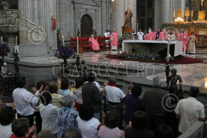 MÉXICO, D.F., 02ABRIL2011.- Norberto Rivera Cabrera, Arzobispo primado de México, saluda a los asistentes durante su misa dominical este medio día en la Catedral Metropolitana de la Ciudad de México. FOTO: MISAEL VALTIERRA/CUARTOSCURO.COM
