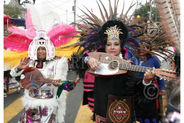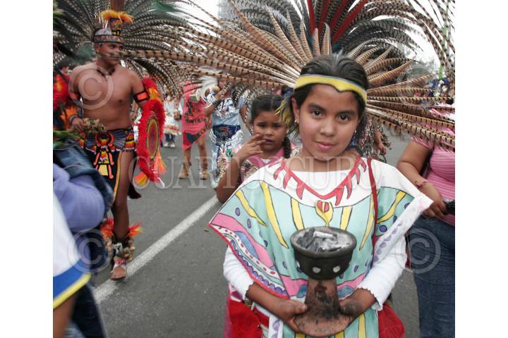 ZAPOPAN, JALISCO 12OCTUBRE2006.- La virgen de Zapopan llegó a su Basílica en medio de una tremenda desorganización y un inusual aparato de seguridad que incluía un capelo blindado. Un grupo numeroso de personas vestían diversos plumajes y atuendos prehispánicos con los que decoraban las calles de la ciudad. FOTO: JOSÉ MARÍA MARTÍNEZ/CUARTOSCURO.COM